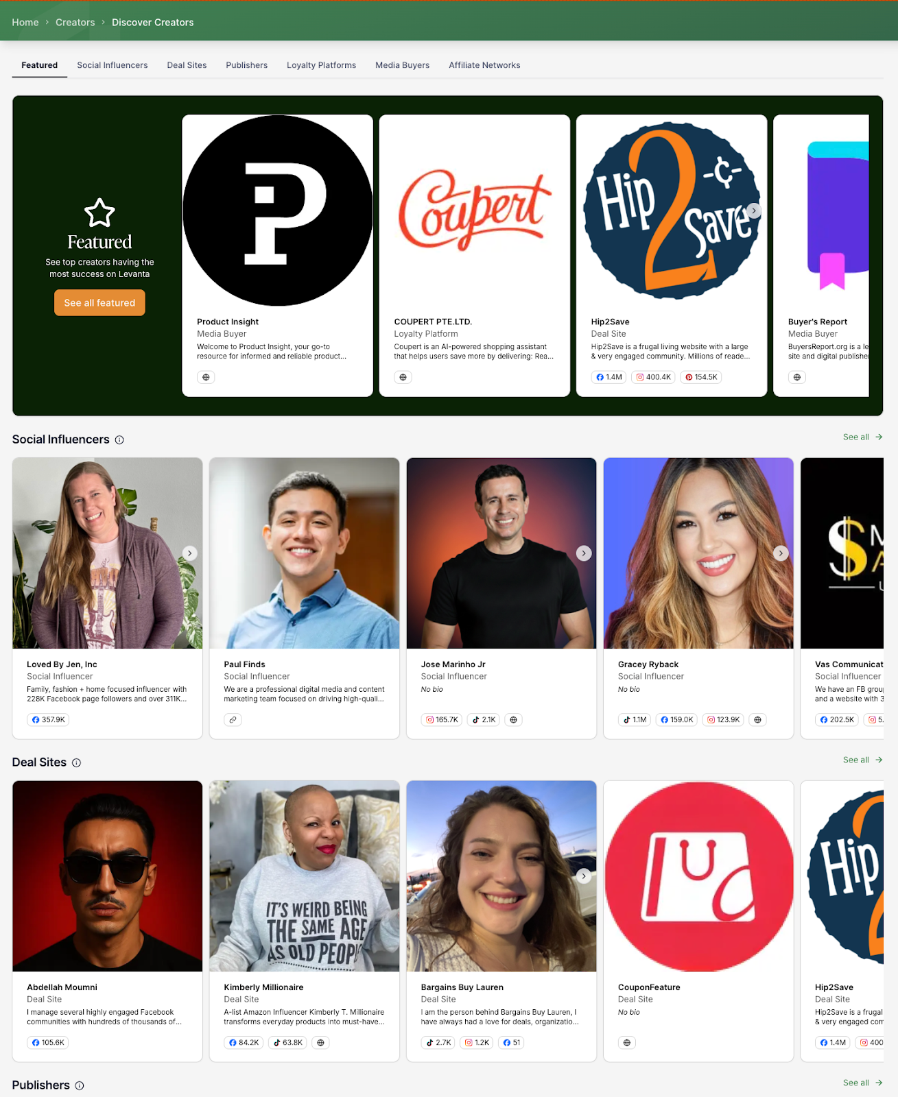 Find high-performing creators through Levanta’s AI-powered Creator Marketplace.