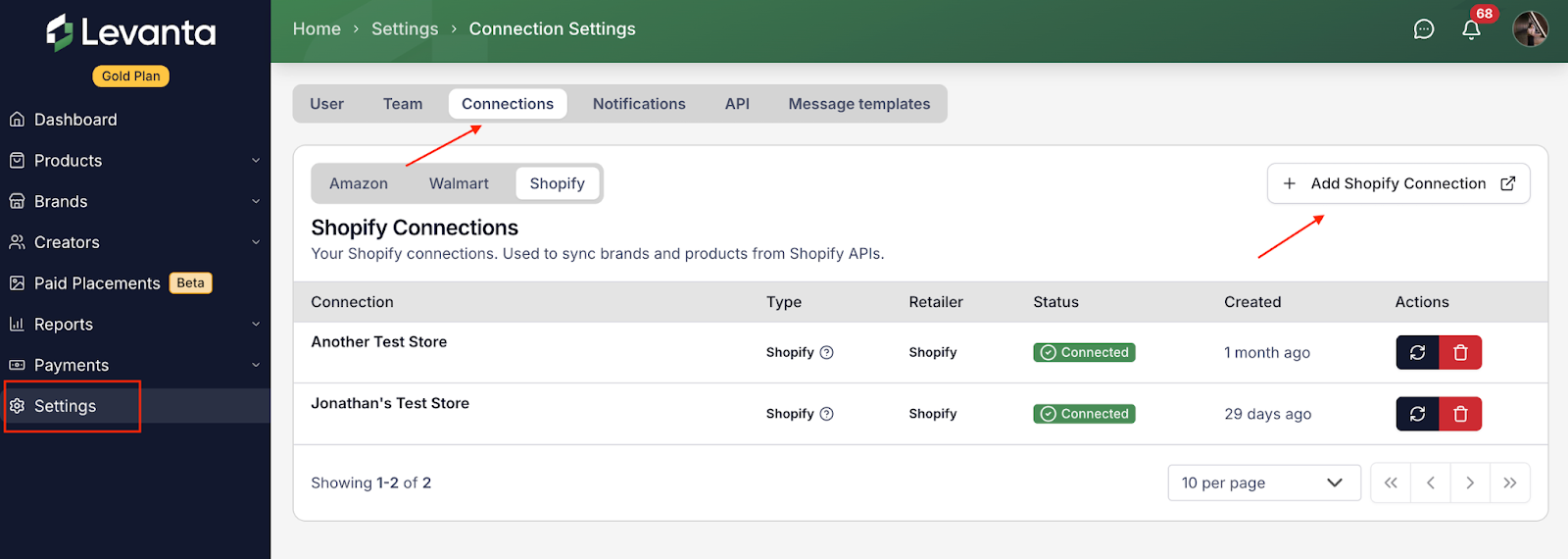 Follow the steps below to connect your Shopify store to Levanta and start managing your brands and products: